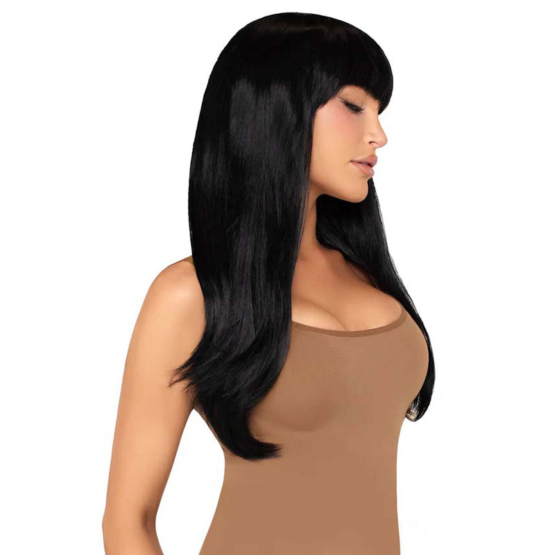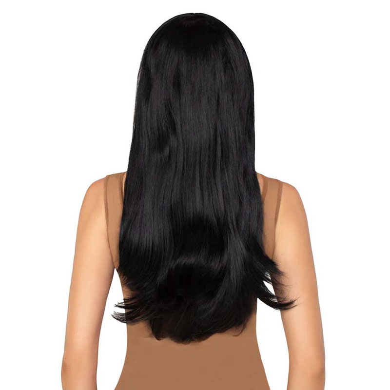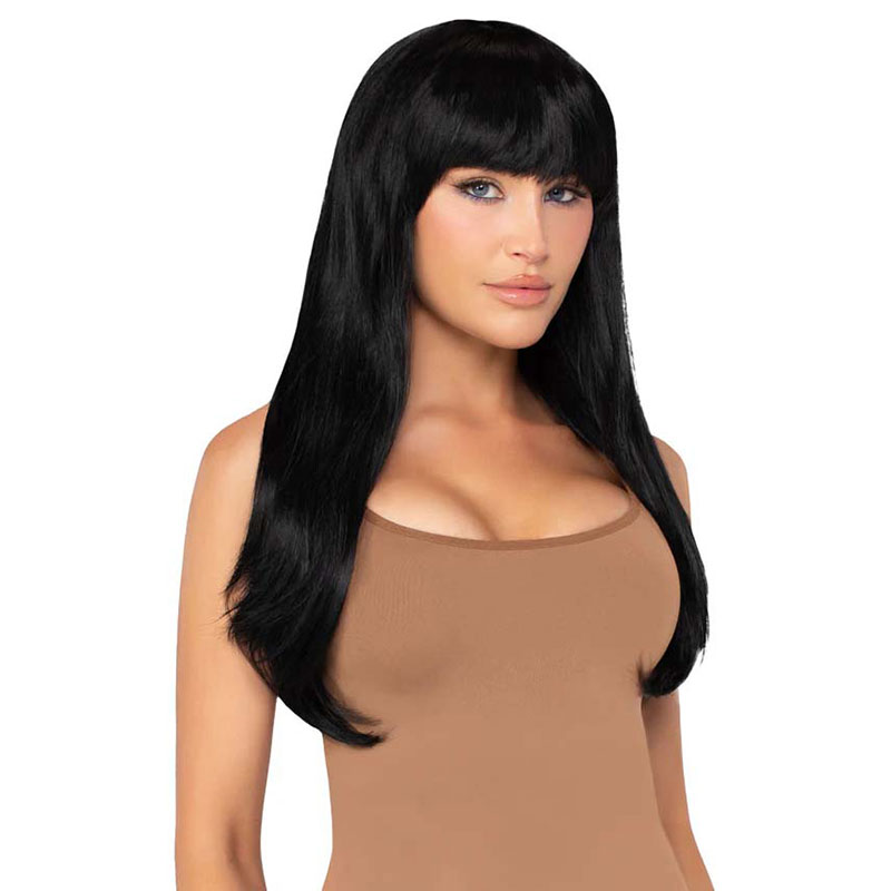 Zijdeachtige glans Bangin’ Lange Zwarte Pruik met Pony. De Leg Avenue pruiken hebben vezels van hoge kwaliteit en een verstelbare pruikenkap voor de perfecte pasvorm.
