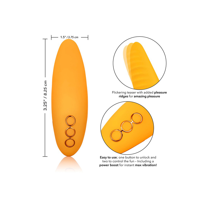 De California Dreaming Hollywood Hottie is een luxe stimulator met 10 intense vibratiefuncties en een heftige Power Boost-functie voor de meest intense vibes. Daarnaast is de vibe volledig waterdicht, waardoor hij uiterst geschikt is voor gebruik in bad of douche. Laad de premium siliconen vibrator in 2.5 uur op met de meegeleverde USB-oplaadkabel om te genieten van 40 minuten high-speed stimulatie of 90 minuten low-speed vibraties. De vibe is gemaakt uit hypoallergene, ongeparfumeerde siliconen en is lichaamsveilig. Te gebruiken met een glijmiddel op waterbasis.