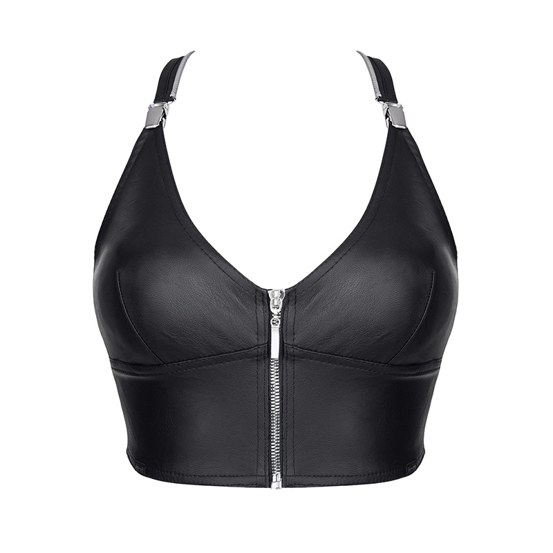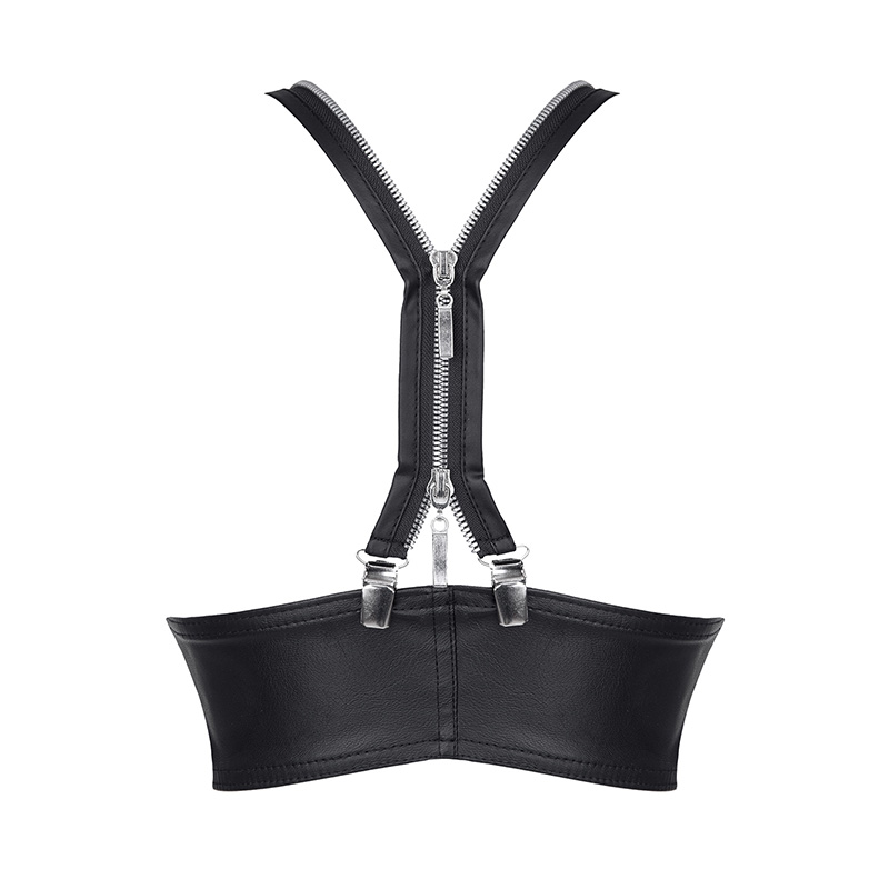 De draagoplossing voor deze imitatieleren Black top Zita van Demoniq is eindeloos. De Zita top wordt aan de voorkant gesloten met een ritssluiting en heeft clipsluitingen waarmee je de schouderbanden in elke positie kunt bevestigen. Of je het nu als ringertop of als strappy back draagt, dankzij de 2-way zipper is dit te verstellen zodat deze zeer comfortabel is om te dragen. De korte top heeft een diepe V-hals en omlijst je decolleté perfect. Bijpassende broekjes uit de collectie vind je ook hier in de winkel.