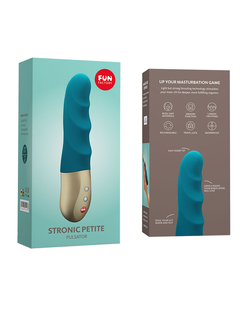 Hou je ervan om nieuwe speeltjes uit te proberen, dan is de Stronic Petite Blauw misschien wel het juiste speeltje voor jou. Onze kleinste en lichtste pulsator stoot helemaal vanzelf voor handsfree PLEZIER. Bovendien is de taps toelopende punt gemakkelijk in te brengen, waardoor het een geweldige eerste pulsator of seksspeeltje is.