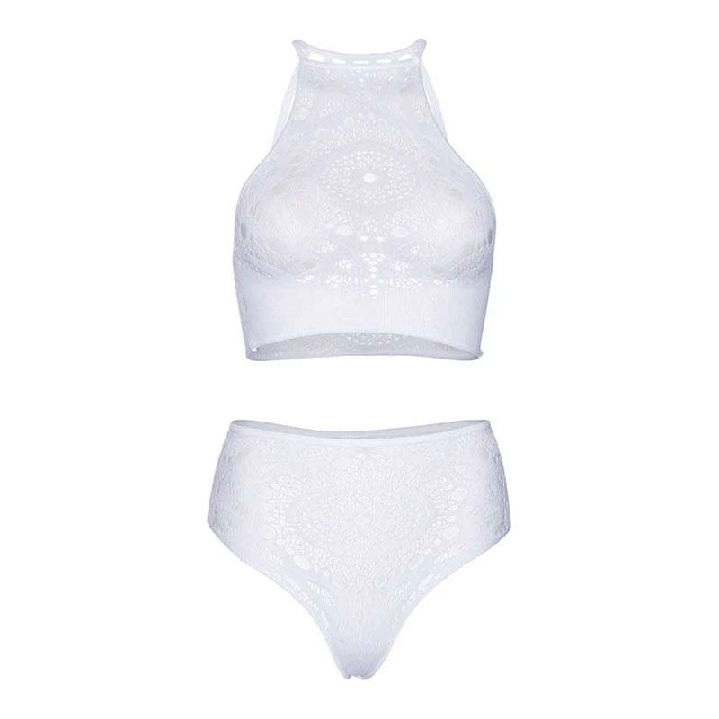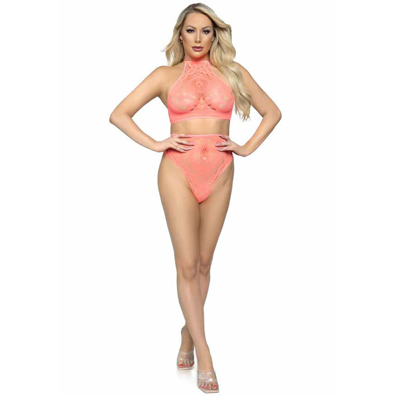 Deze speelse kanten Halter Crop Top and High Waist Thong lingerieset van Leg Avenue vraagt erom gezien te worden. De prachtige boho kanten crop top heeft een bandjesdetail op de rug dat alle ogen op je vestigt en een string met hoge taille die perfect zit. Combineer de doorschijnende lingerielook met een bikinitop voor een sexy zomerlook of met een pastie voor een hot lingerie rave-outfit.