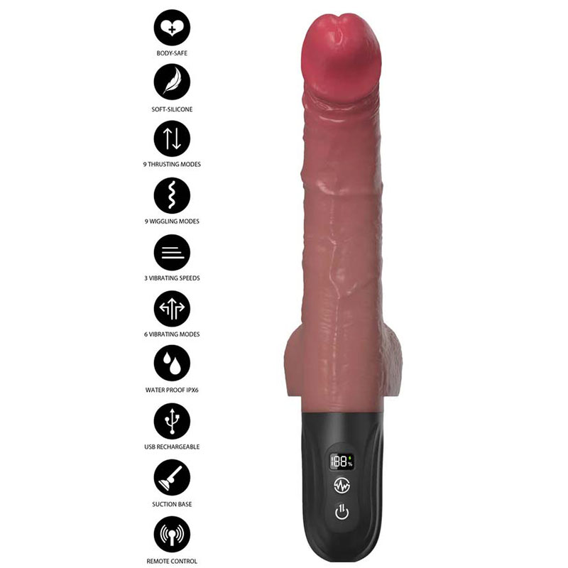 Ervaar levensecht plezier met de Realistic Thrusting and Wiggling Vibrator, een innovatieve penetratiestimulator die je met intense, diepe bewegingen naar nieuwe hoogten van extase brengt. Met zijn krachtige motor, afneembare zuigvoet en handsfree afstandsbediening is deze vibrator perfect voor soloavontuur of gedeeld plezier.