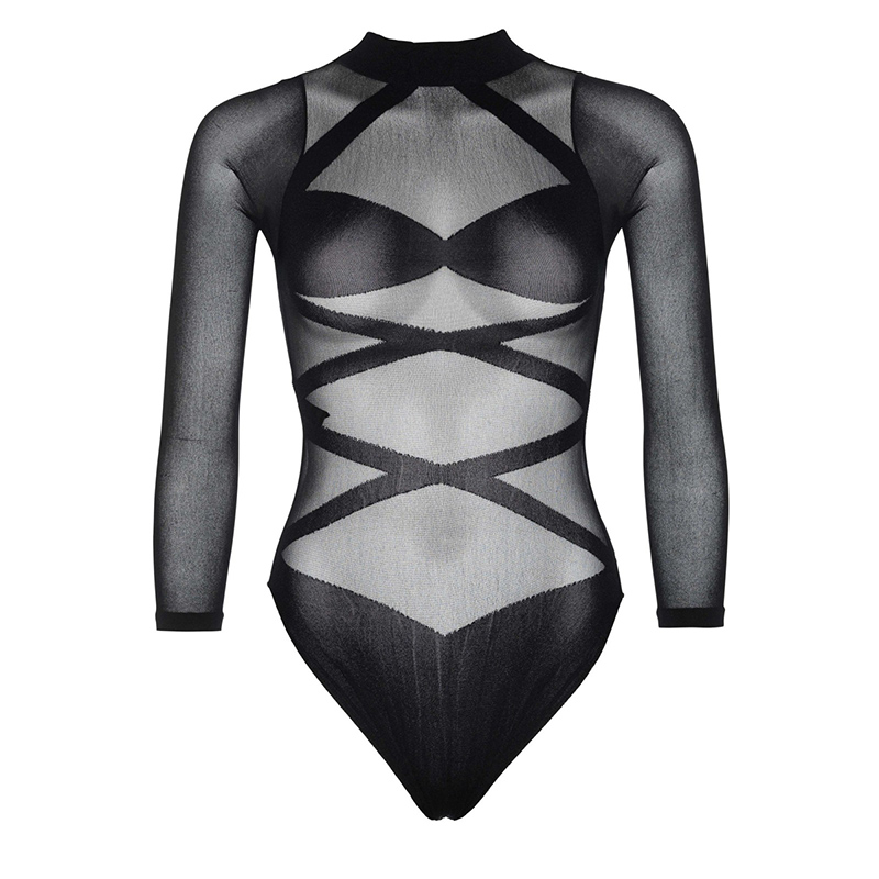 Body met lange mouwen in een transparante en opaque criss-cross design met bijpassende kousen.