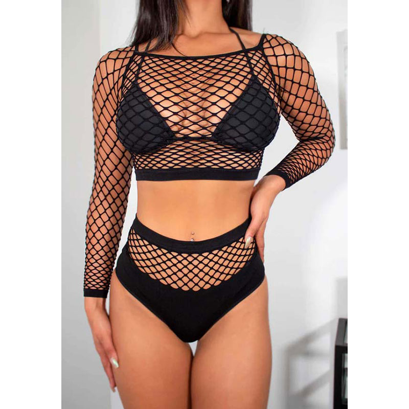 Creëer een visnet lingerie look die ook als laagjes gedragen kan worden met deze sexy Crop Top and High Waist Bottom set van Leg Avenue. Een schattige lingerie basic, de crop top met lange mouwen heeft een wijde boothals en de volledige set is ondoorzichtig met een sexy visnet hoge taille. Of je nu de perfecte outfit voor een date night creëert of op zoek bent naar een adembenemende sexy rave outfit , deze visnet crop top en hoge taille panty zijn je nieuwe favoriete styling item. (BH niet inbegrepen)