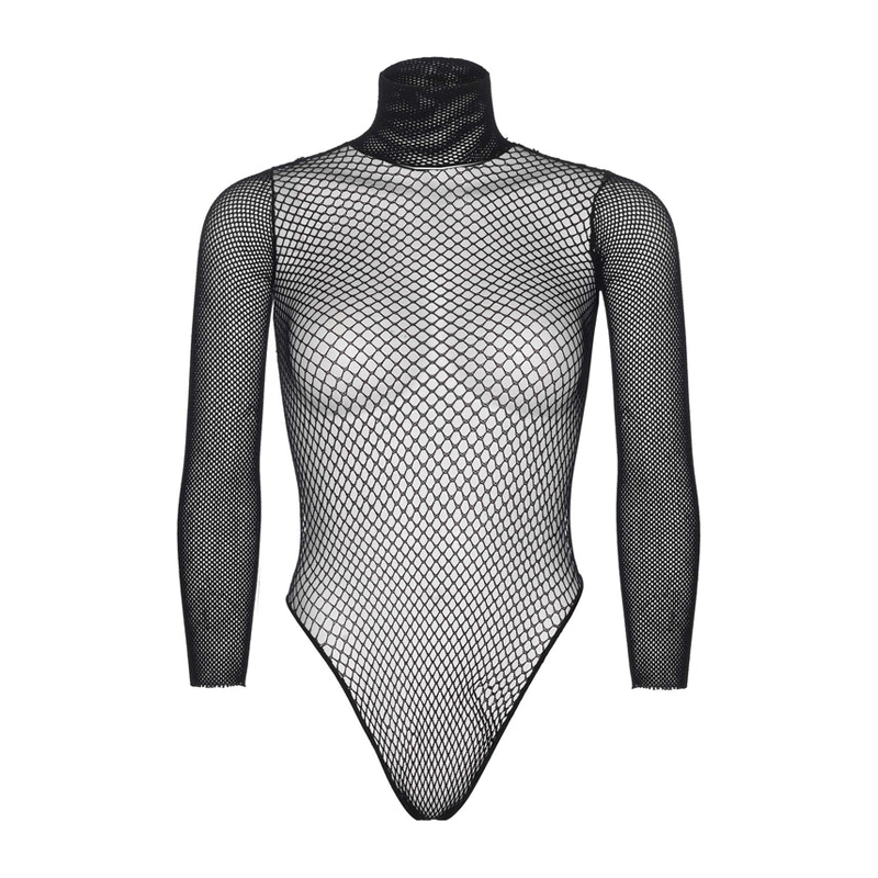 Sexy visnet bodysuit met hoge hals