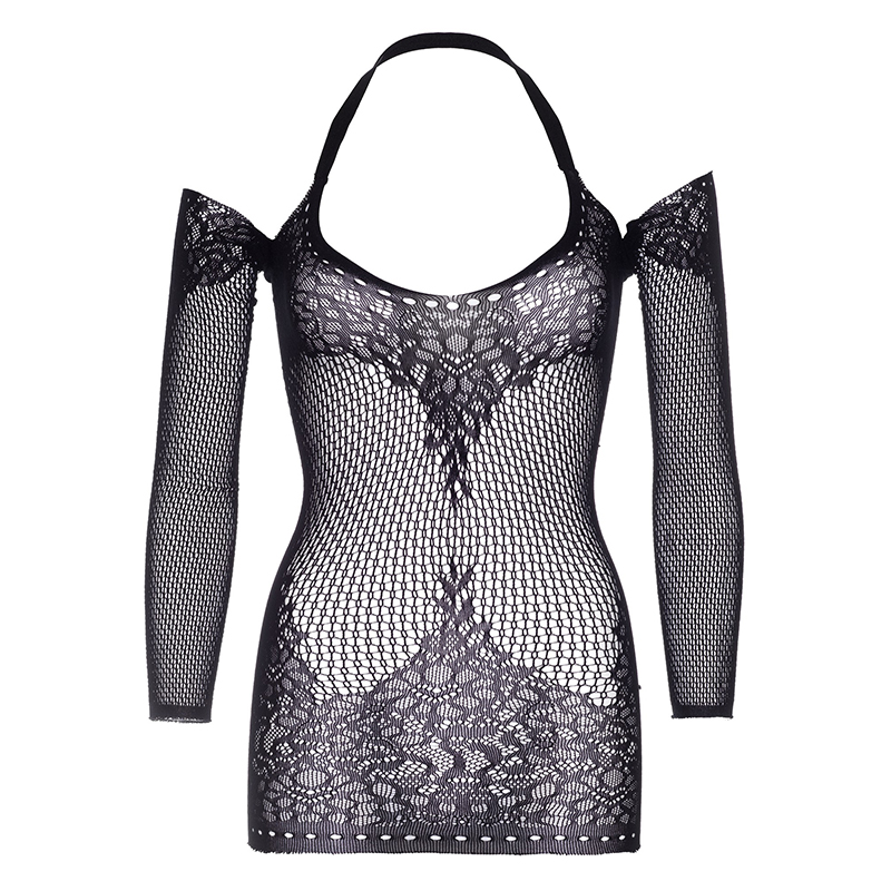 Naadloos mini jurkje met lange mouwen en een gekruiste halter.