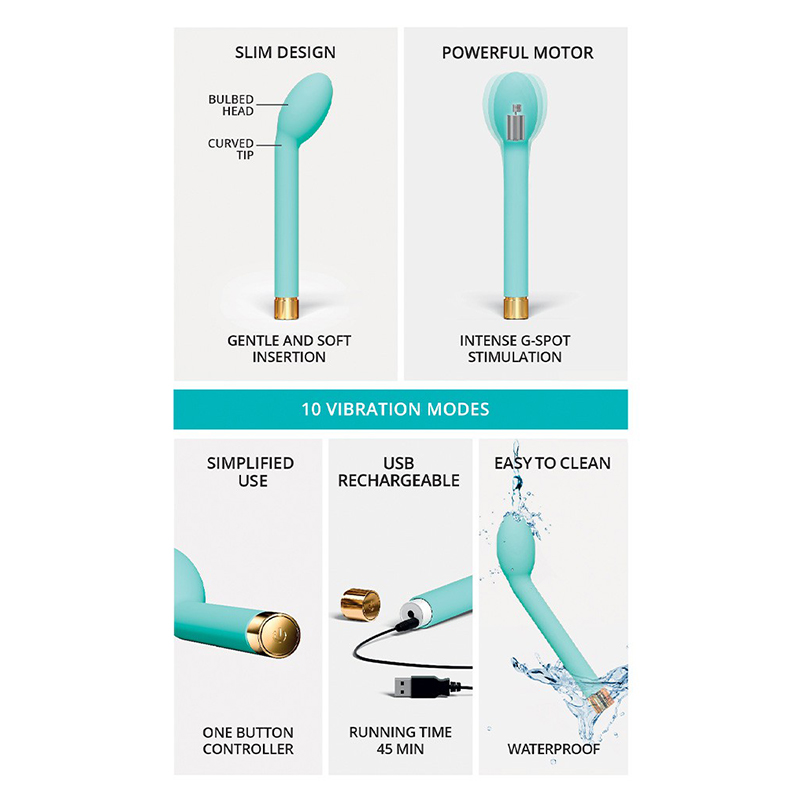 O.M.G. heeft een gebogen punt die perfect is om de g-spot te stimuleren. Met de enkele knop navigeert u eenvoudig tussen de 10 verschillende vibratiestanden. De ultrazachte siliconen met een fluweelachtige textuur is glad en veilig voor de huid.