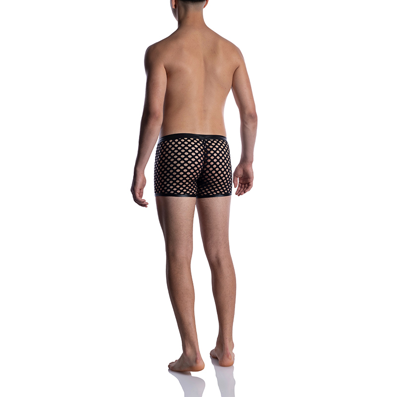 Klassiek gesneden M2054 Hip Boxer een boxershort, maar gemaakt van een uitgekiende combinatie van materialen. De diepzwarte hippe boxer uit de M2054 serie zorgt voor sensatie, want het kunstleer heeft een matte glans en de grofmazige mesh jersey laat de heupen en billen verleidelijk doorschijnen. Het casual overhemd past er goed bij.