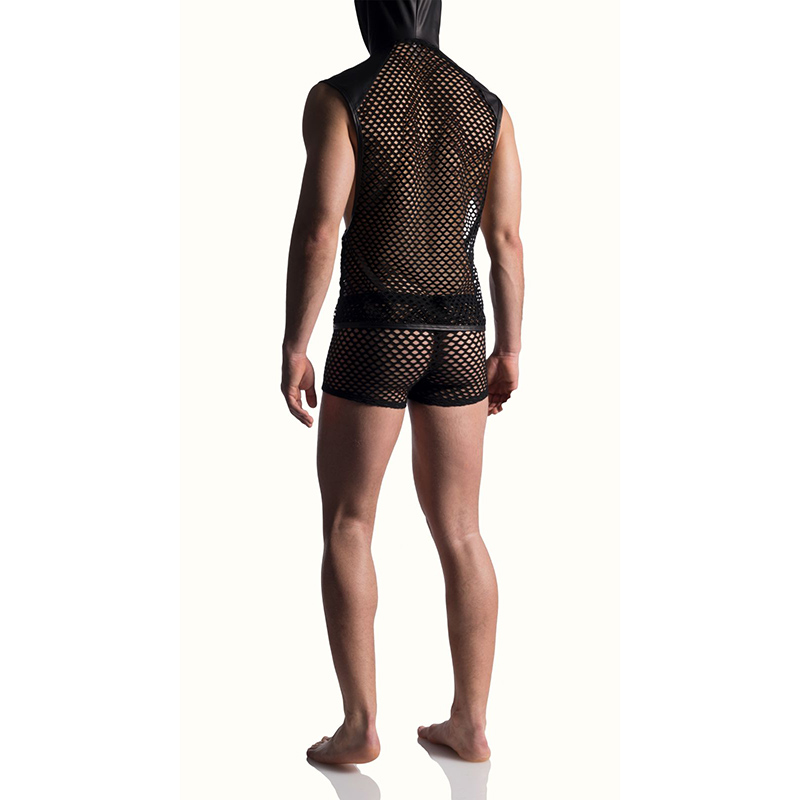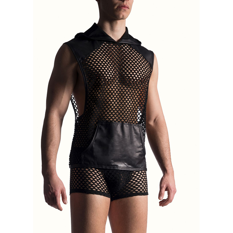 Deze stoere doorschijnende M817 Kangaroo Hoody uit de nieuwe collectie van Manstore is gemaakt van een geperforeerde elastische stof. De zakken op de buik, de delen op de schouders en ook de capuchon zijn gemaakt van Wetlook.