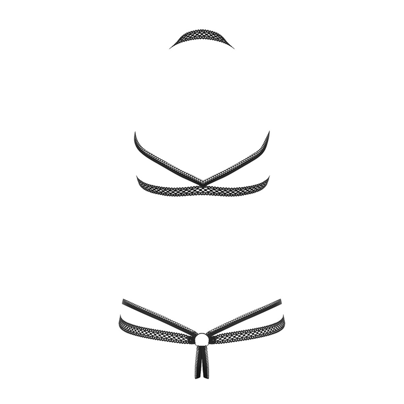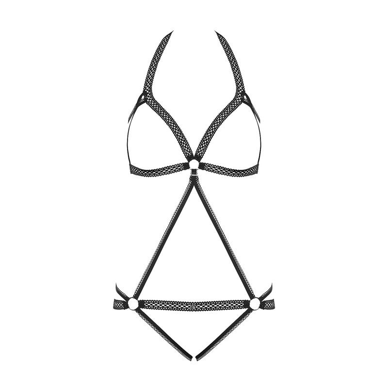 Spannende Darkie crotchless teddy van Obsessive met elastische bandjes. Je kunt de bovenkant van de onderkant scheiden (onder de buste)