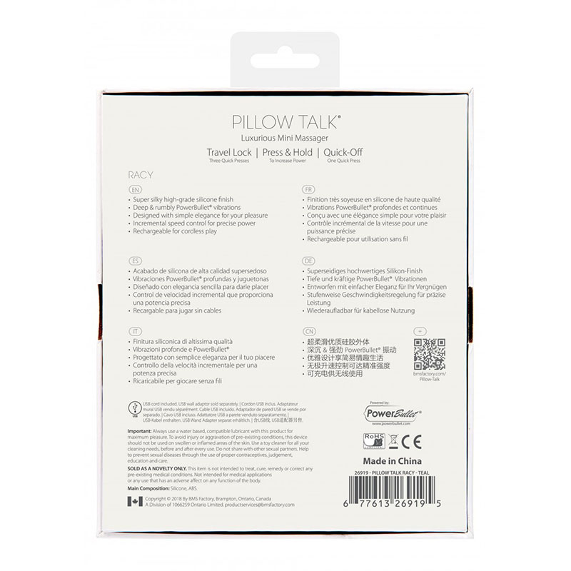 De Racy G-Spot Vibrator is een krachtige mini massager die ongelooflijke trillingen biedt voor externe of G-spot stimulatie. Racy is handig en compact om onderweg je avonturen te beleven. Compleet met een oogverblindende Swarovski-kristalknop, combineert Racy luxe en kracht om u het ultieme genot te bieden. • Super zachte hoogwaardige siliconen afwerking • Diepe en stille Power Bullet®-vibraties • Ontworpen met eenvoudige elegantie voor uw plezier • Incrementele snelheidsregeling voor nauwkeurig vermogen • Oplaadbaar voor draadloos spelen.