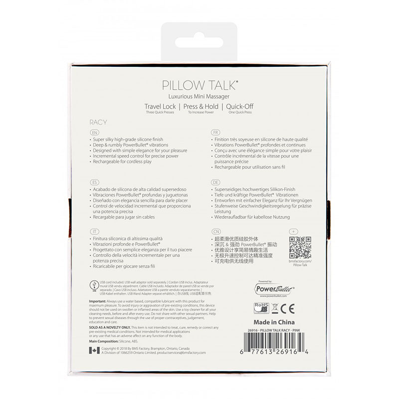 De Racy G-Spot Vibrator is een krachtige mini massager die ongelooflijke trillingen biedt voor externe of G-spot stimulatie. Racy is handig en compact om onderweg je avonturen te beleven. Compleet met een oogverblindende Swarovski-kristalknop, combineert Racy luxe en kracht om u het ultieme genot te bieden. • Super zachte hoogwaardige siliconen afwerking • Diepe en stille Power Bullet®-vibraties • Ontworpen met eenvoudige elegantie voor uw plezier • Incrementele snelheidsregeling voor nauwkeurig vermogen • Oplaadbaar voor draadloos spelen.
