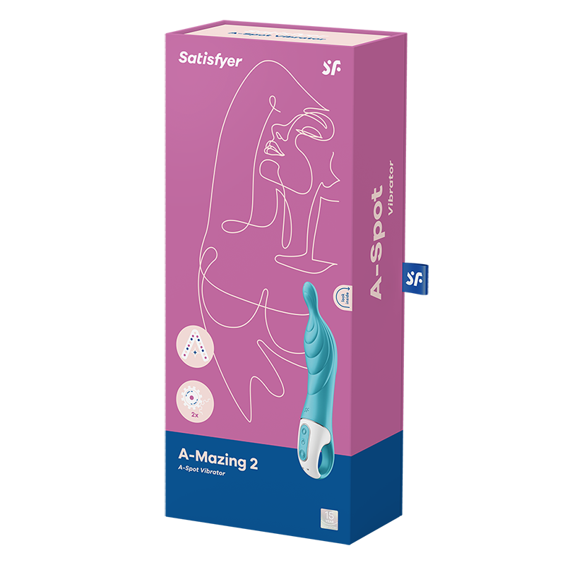 Dankzij de A-Mazing 2 A-Spot Stimulator van Satisfyer wordt de A-spot gestimuleerd: dit is de erogene zone tussen de G-spot en de baarmoederhals. A-Mazing 2 heeft een lange, licht gebogen schacht, wat zorgt voor een diepe A-spot stimulatie. Daarnaast heeft de A-Mazing 2 een gegroefde textuur aan de bovenkant van de vibrator. Het ergonomische, ringvormige handvat en de stevige body zorgen ervoor dat A-Mazing 2 gemakkelijk en comfortabel is vast te houden tijdens het gebruik. De top van de vibrator is flexibel, waardoor andere erogene zones ook gestimuleerd kunnen worden. A-Mazing heeft 2 krachtige motoren en stimuleert de gebruiker met 12 verschillende vibratie programma’s die eenvoudig te navigeren zijn via het bedieningspaneel op de vibrator.