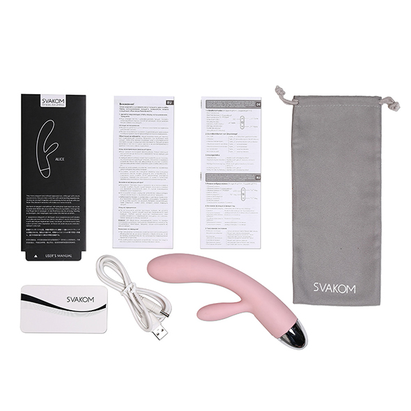 Svakom Alice is uitgerust met 2 motoren en deze verdubbelen het plezier elke keer als deze toy in jouw handen ligt. Een prachtige, stijlvolle en anatomische vormgeving voor zowel inwendige G-Spot als uitwendige clitoris stimulatie op het zelfde moment. Alice heeft een waterdichte, veilige silicone huid welke aangenaam aanvoelt. Ontdek de sensatie van twee aparte motoren die gelijkertijd twee verschillende gebieden verwennen. Alice heeft 8 passionele standen in trilsnelheid en pulsatie. 1,5 uur opladen = 3 uren speel plezier. Alice zal je tot volle tevredenheid verwennen met onovertroffen plezier. Druk de middelste knop voor 3 seconden in en hier schakel je jouw toy zowel mee aan als uit. Gebruik daarbij de overige twee knoppen om jouw favoriete programma te ontdekken.